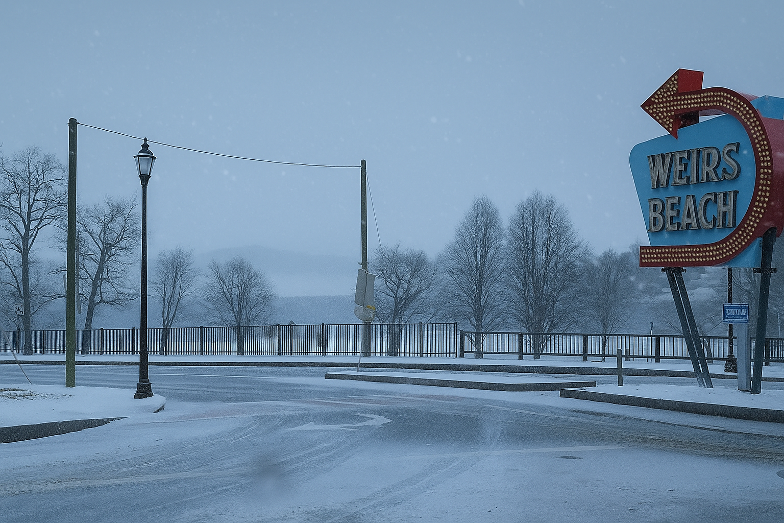 Weirs Beach with its arcades, boardwalk, and boat access.